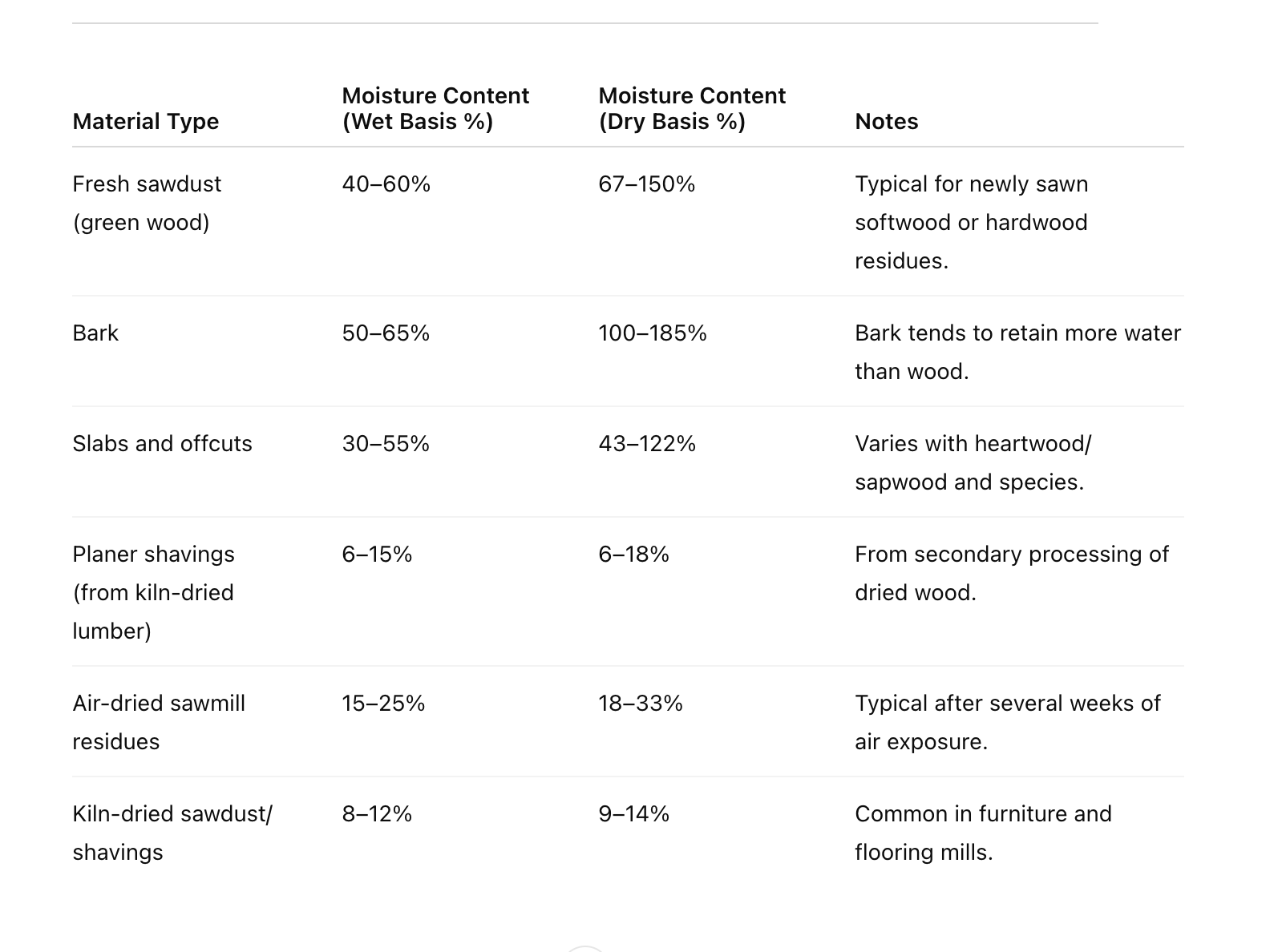 – Moisture content of Sawmill Wastes (ChatGPT):