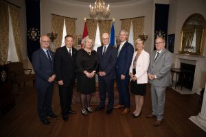 NS Gov News Release “…Premier Houston will take over as Minister of Energy. He will continue as President of the Executive Council, Minister of Intergovernmental Affairs, and Minister of Trade. “I want to turn Nova Scotia into an energy superpower,” said Premier Houston…Kim Masland, Minister of Emergency Management, will also take on the role of Minister of Natural Resources.” In photo at right: L-R: John White, Minister of Housing; Scott Armstrong, Attorney General, Minister of Justice and Minister of Equity and Anti-Racism; Kim Masland, Minister of Natural Resources and Minister of Emergency Management; Chief Justice Michael Wood, representing Lt.-Gov. Mike Savage; Premier Tim Houston, Minister of Energy, President of the Executive Council, Minister of Intergovernmental Affairs, and Minister of Trade; Barbara Adams, Minister of Opportunities and Social Development, Deputy Premier, Deputy President of the Executive Council, Minister of Seniors and Long-Term Care, and Minister responsible for Military Relations; and John A. MacDonald, Minister of Municipal Affairs. (Province of Nova Scotia)” Timothy Halman apparently remains as Minister of Environment and Climate Change