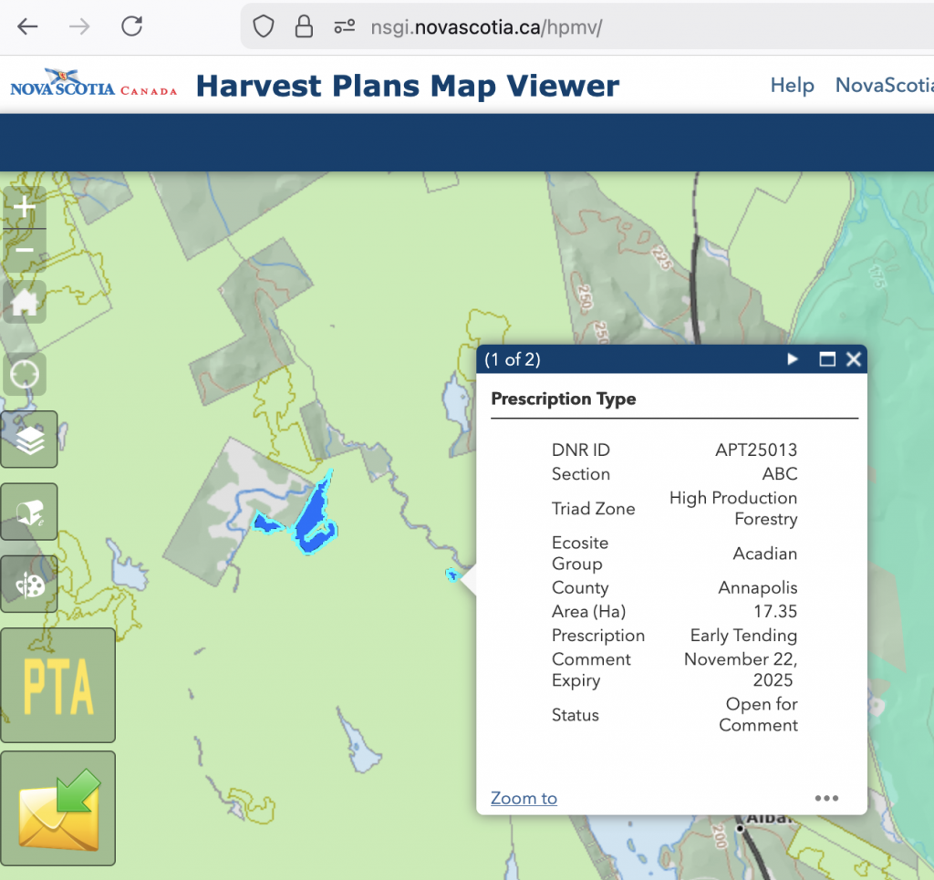 The plan to turn this parcel of land into a zone of perpetual clearcutting is a needless assault on biodiversity. This is due to the location of this polygon. It stretches across a narrow tongue of crown land connecting the Cloud Lake Wilderness Area and the important complex of wetlands and forest to the west. At least three proposals to permanently protect the area around Beals Brook were submitted to the Department of Environment in 2022. Two of them included this tongue of crown land that crosses Hwy 10 to reach the existing protected area. Wildlife connectivity is severely limited in our fragmented landscape. A clearcut across this tongue in the past removed the necessary forest cover for wildlife to move freely. That cover is now reestablishing itself. The very last thing that should happen here is High Production Forestry. “Early tending” is a nice sounding phrase for grooming the site for a future of recurrent assaults on the soil, the vegetation, the wildlife. Since we humans are a part of nature and depend on healthy ecosystems, HPF practices are also damaging to our health. HPF according to DNR’s Phase 1 and Phase 2 documents is expected to include the use of herbicides such as glyphosate, most likely from the air. Spraying herbicides to suppress hardwood has no social license. This is why the government this year chose to hide the locations of approved aerial spray sites from the public.Plenty of people live around Trout Lake and along that part of Hwy 10. Has anyone asked them what they think of aerial spraying in their backyard? It is ludicrous for DNR to want only comments about the specific harvest plan footprint when forestry activities such as spraying impact watersheds.