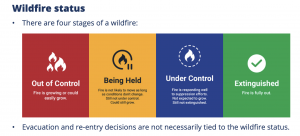 NS Gov. 5 page document, well illustrated; sections: Wildfire status, Size of wildfire, Active wildfire zone, How we fight wildfires, How we protect homes and buildings, Evacuation.