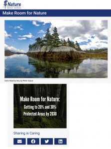 Visit NatureNS: Make Room for Nature: Getting to 20% and 30% Protected Areas by 2030. or view a PDF of the NatureNS Post here.