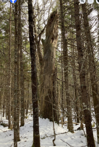 More on the curious history of these zombie harvest plans another day. Suffice to say that, thanks to public actions to protect them over the past 7 years, the old and mature red spruce north and east of camp are still standing, providing shelter from this winter’s storms. Old red spuce are a rarity, as anyone who spends time in Nova Scotia’s forests knows. Although they are capable of living well past 250 years, it’s unusual to find an old red spruce that doesn’t have some kind of flaw that made it undesirable to the mills. The only way to rebuild the stock of old growth red spruce dominated stands is to leave a few of the mature stands alone. It’s not a huge ask of a government that is supposedly committed to protecting 20% of our lands and waters.