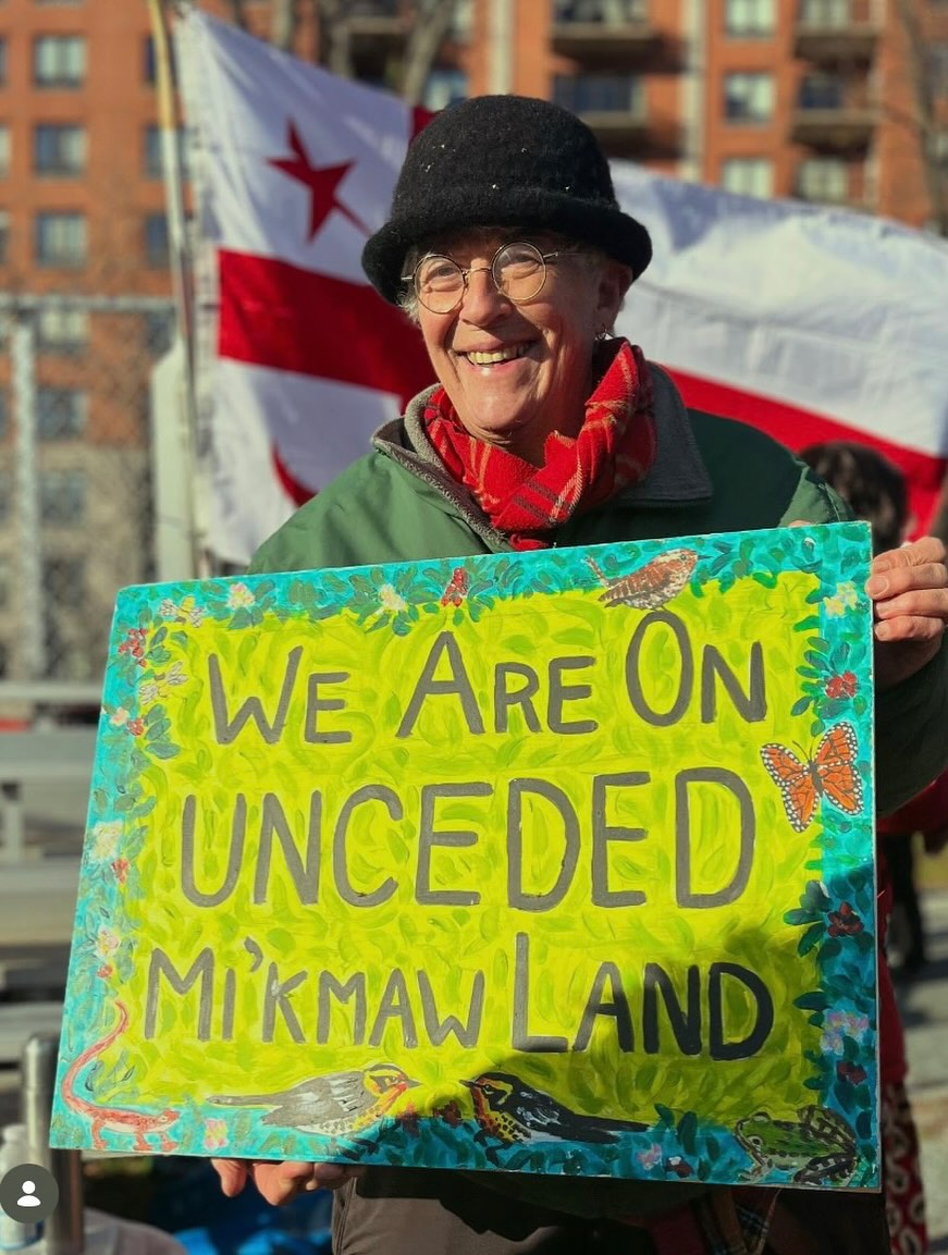 ![]() Photo: Gretchen Fitzgerald “Amazing rally upholding our Treaty responsibilities to stand up for L’nu’k land & water protectors on Tqamuoweye’katik/Hunter’s Mountain & all across Mi’kma’ki!! “According to Mi’kmaw Dr./Elder Albert D Marshall Sr., the essence of Ankukamkowe’l/Treaties comes from the verb Ankweyatultinej – Let’s Take Care of Each Other. This is what his ancestors had in mind with the Treaties of Peace & Friendship & includes our more than human relatives. M’sit No’kmaq – All My Relations. “Albert also says that we need to take action grounded in Ankweyatultinej – this includes speaking out for the beings that cannot, and for the injustices happening to destroy land and water.”
